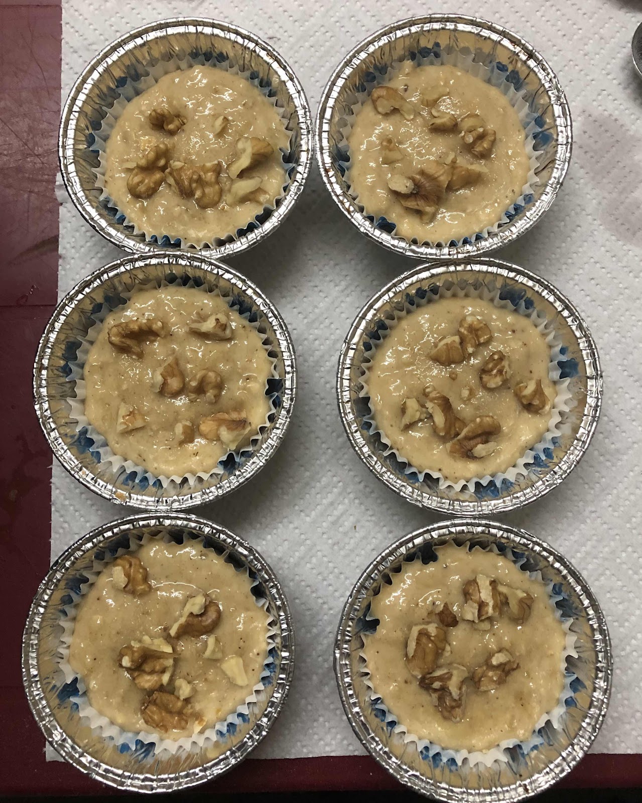 - Prepare the batter in the muffin pan top up with wall nuts as you like and sprinkle with brown sugar on top.